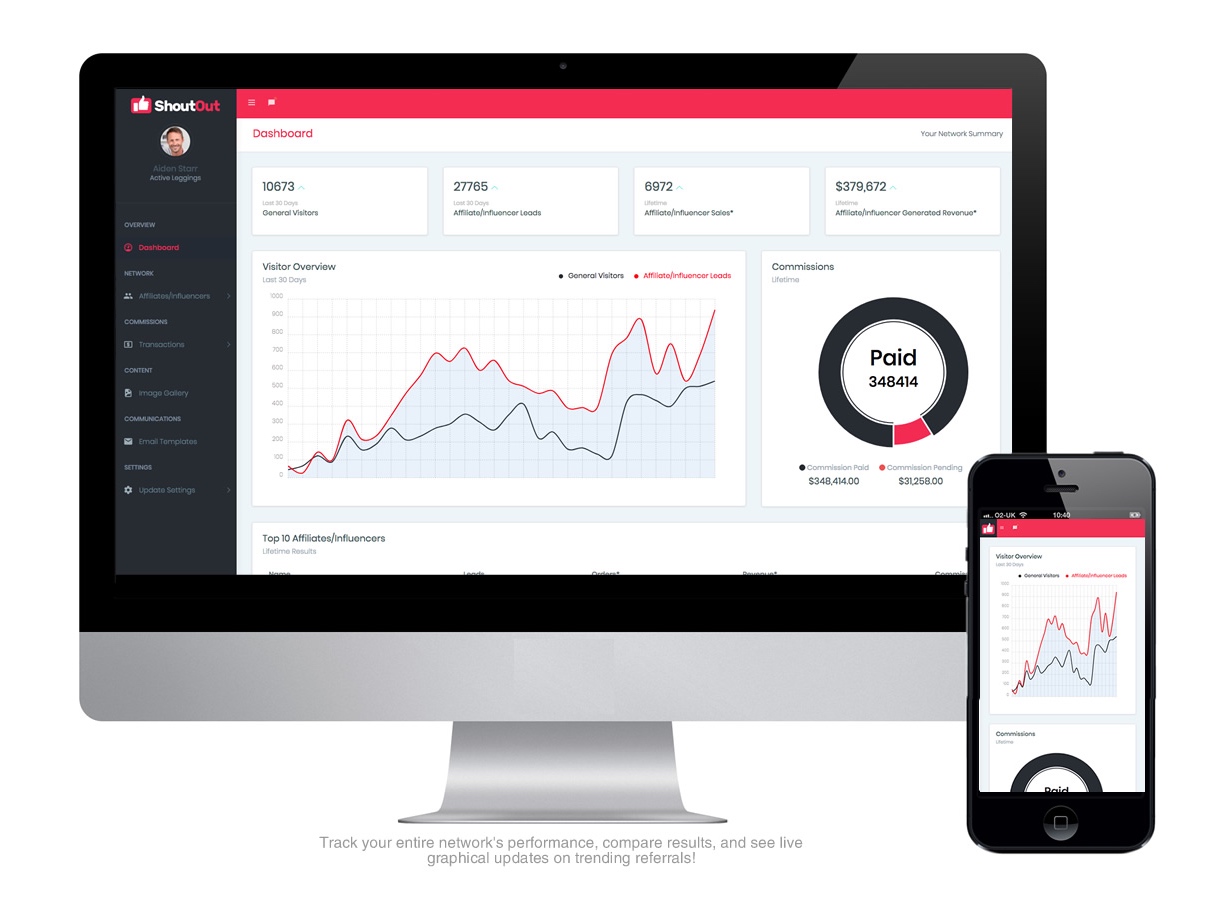 ShoutOut is a software as a service (SaaS) and is a popular affiliate and multi level marketing solution that allows tracking of affiliates.