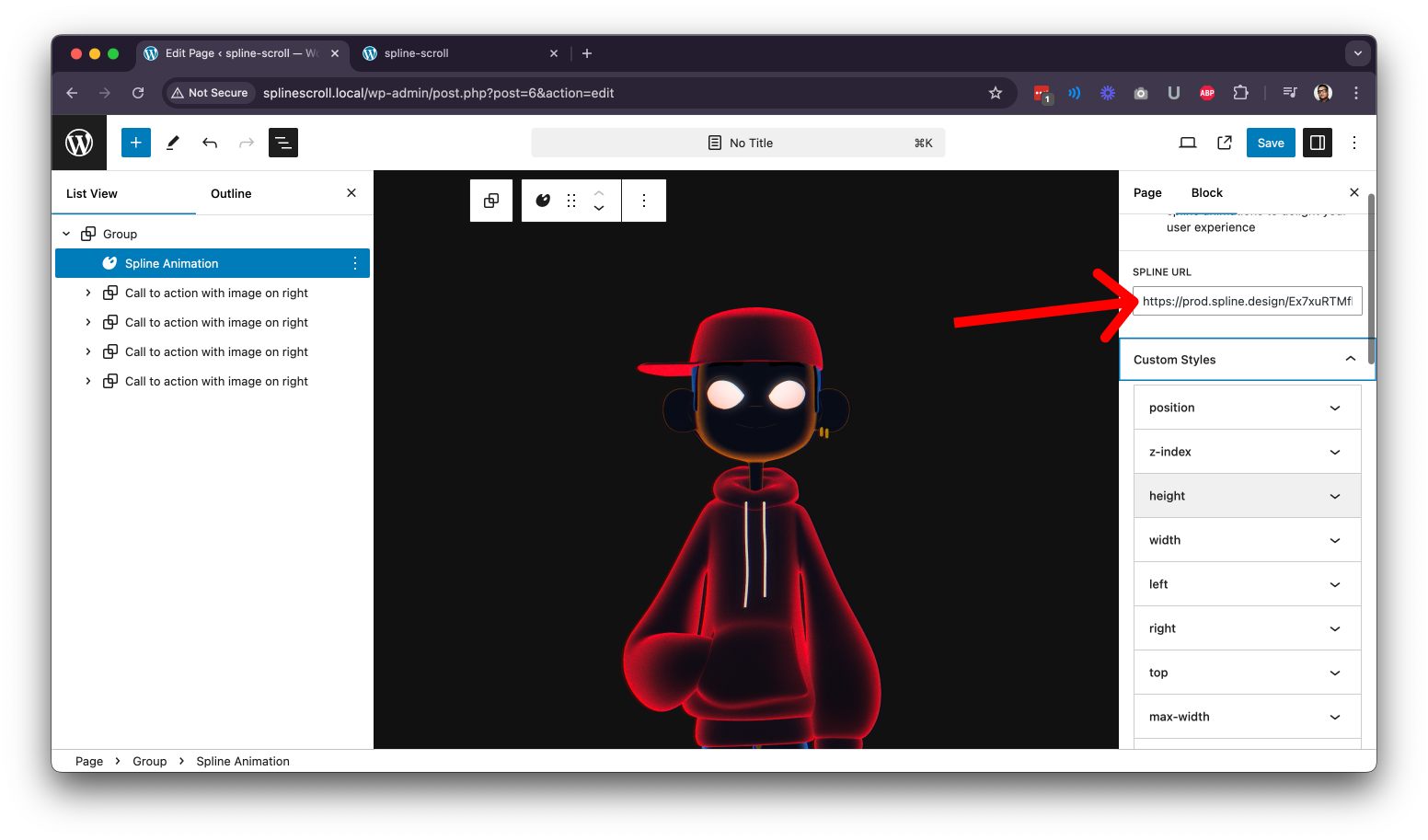 - First, install the Spline animation Block plugin