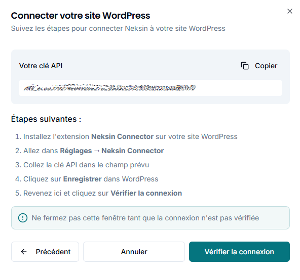 Neksin Connector permet de connecter votre site WordPress à la plateforme Neksin pour :