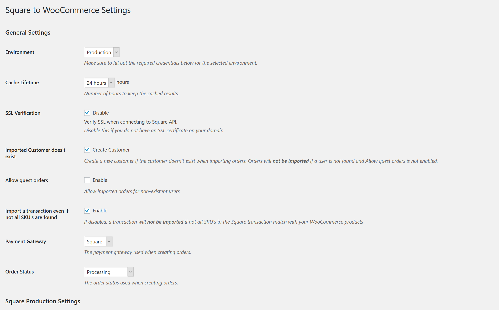 - IMPORTANT Match the item SKU’s on both Square and Woocommerce, this is ho the price is calculated on WooCommerce. The payment will not be imported if no matching SKU’s are found