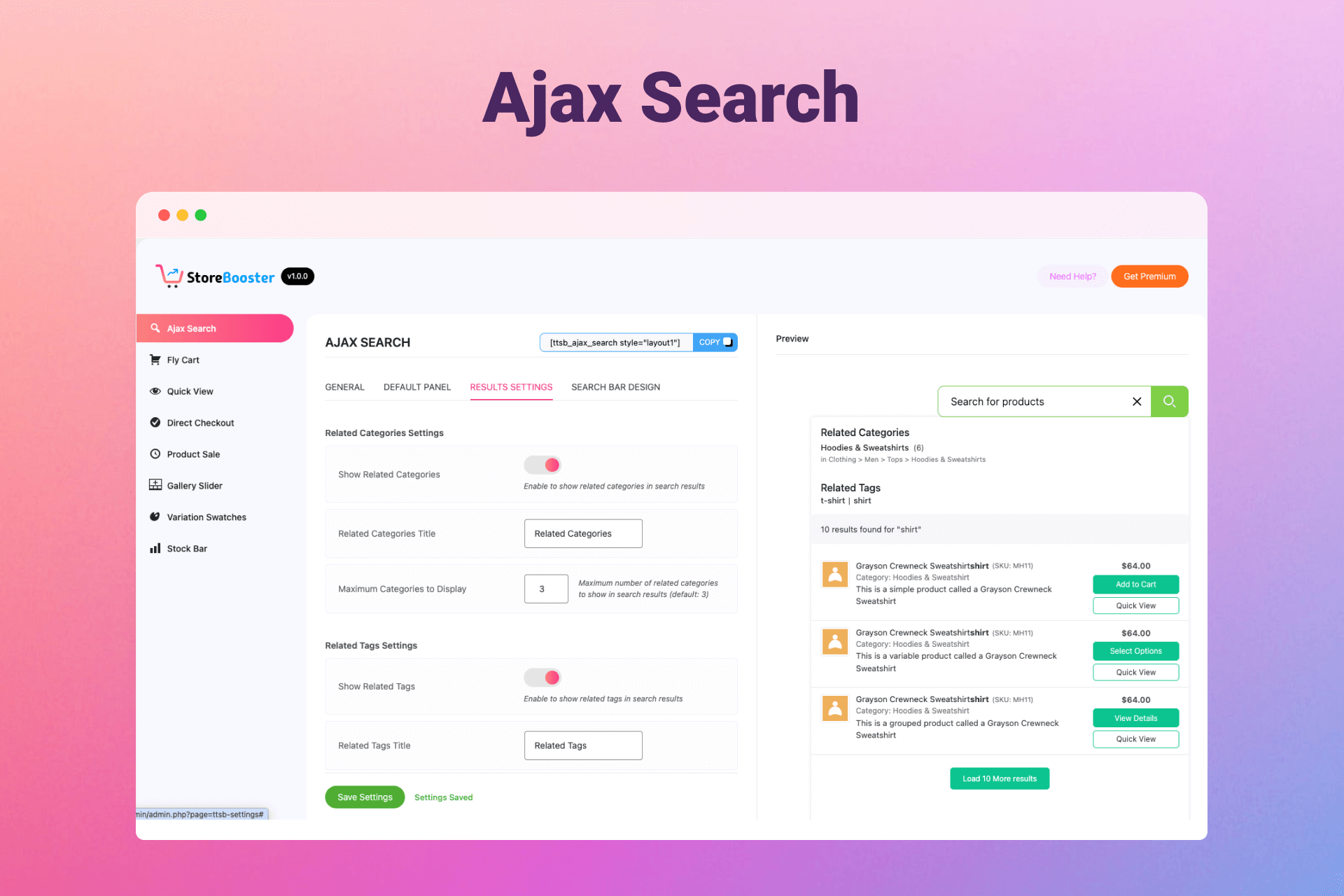 StoreBooster is the ultimate WooCommerce enhancement plugin designed to transform your online store into a modern, efficient, and user-friendly shopping experience. With powerful features like Real-Time AJAX Search, Quick View, Fly/side Cart, Gallery Slider, Variation Swatches, Stock Bar, Sale Countdown, and Direct Checkout, StoreBooster helps boost conversions and keep shoppers engaged.