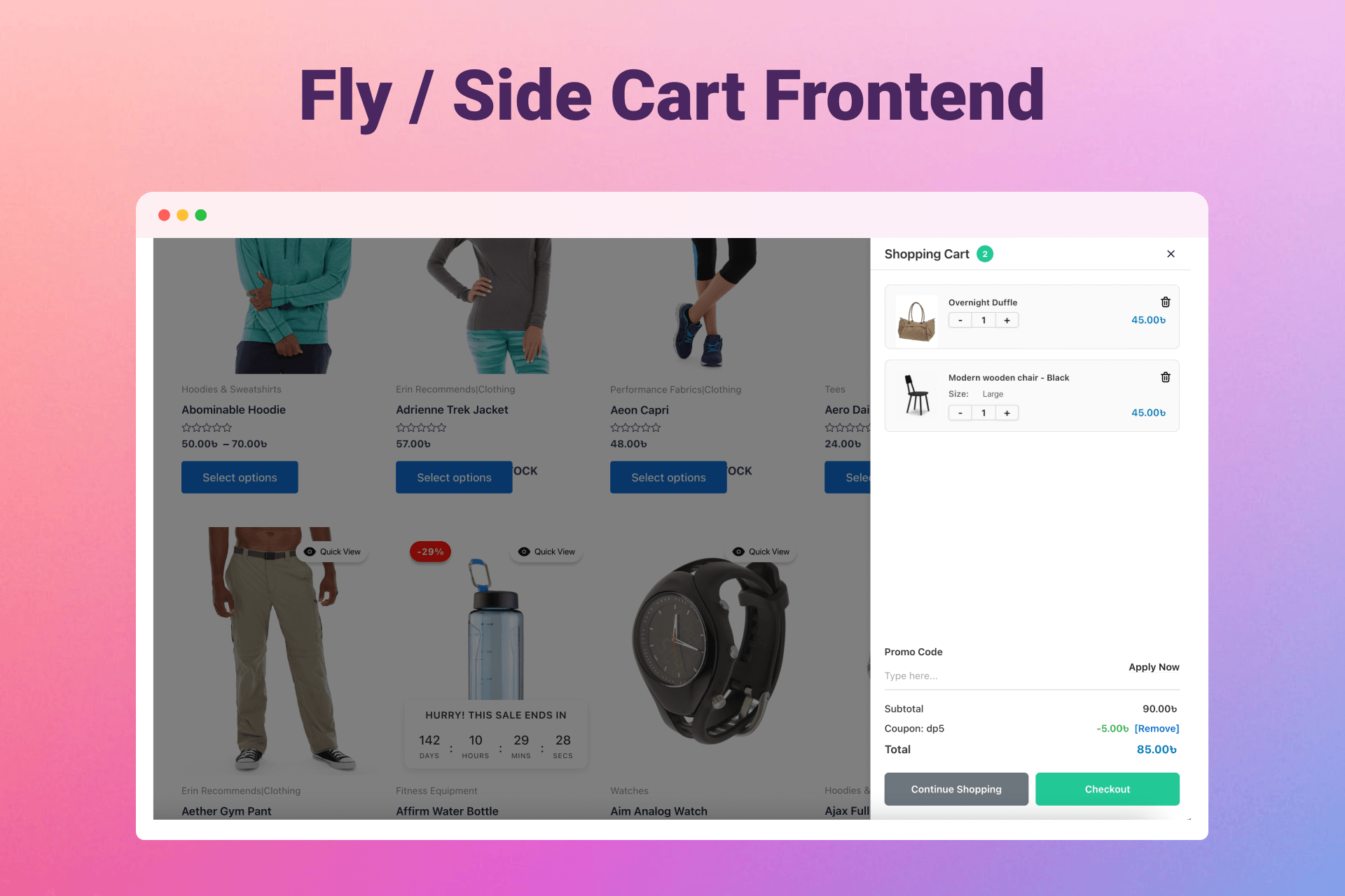 - AJAX-Powered Fly Cart / Side Cart – Stylish, responsive side cart powered by AJAX for instant updates
