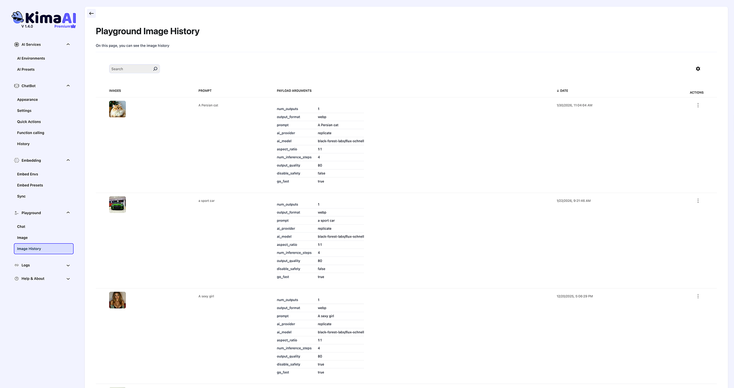 - Playground Image History: search capability.