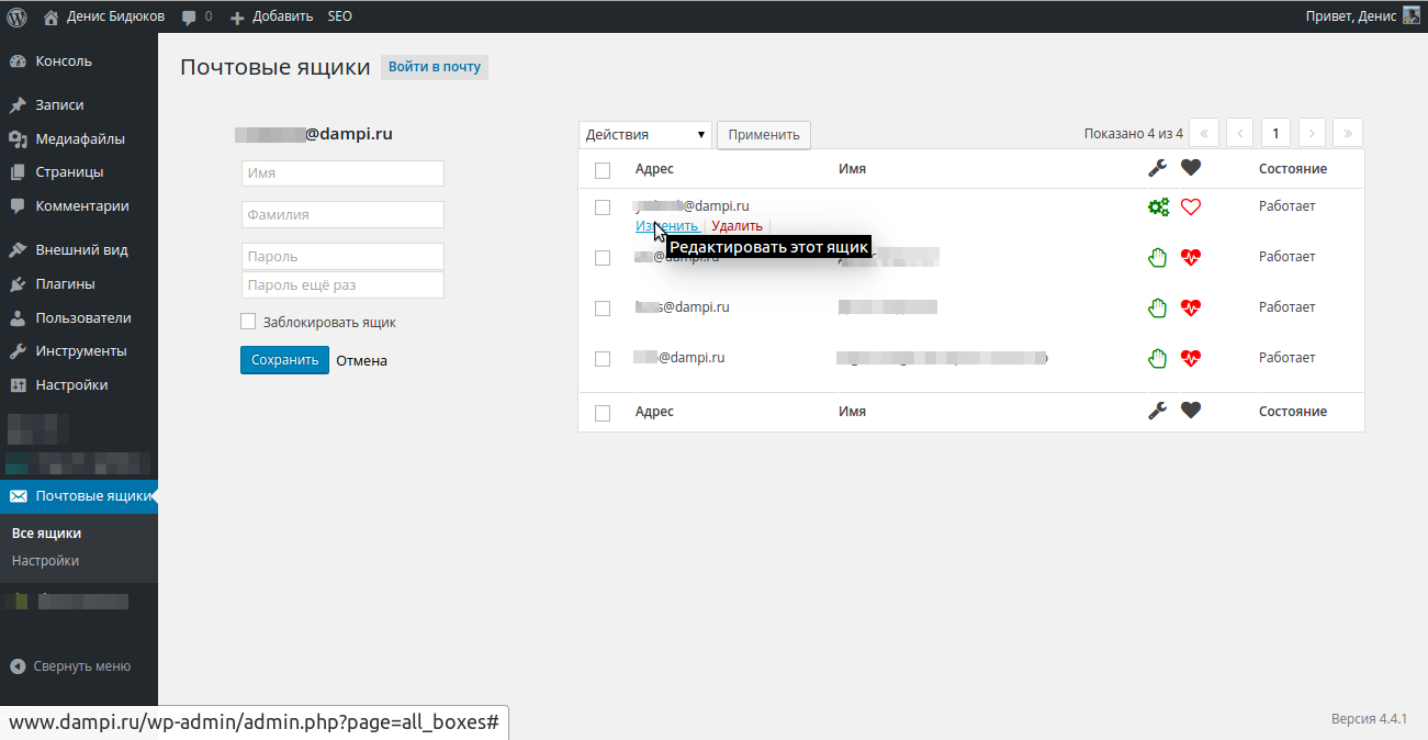 - Топаем на страницу “Почтовые ящики” (слева внизу) и действуем строго по приведенной, на этой странице, инструкции