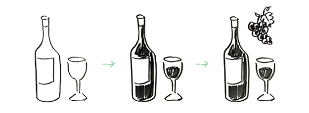 ・いっしょに原材料のブドウを描けば伝わるかな?