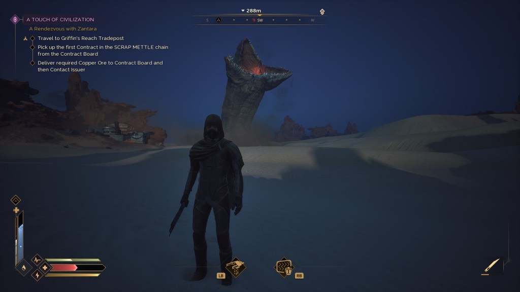 I think the game should warn you about quicksand, but let you out the first time. Or tell you straight up, do NOT try to recover your body if it is too far out in the desert. I also get the worm death is harsh, but stripping you completely is very harsh – especially, the first time I died via worm. And of course, a bug where even the replacement sandbike disappears basically makes me not want to keep playing.