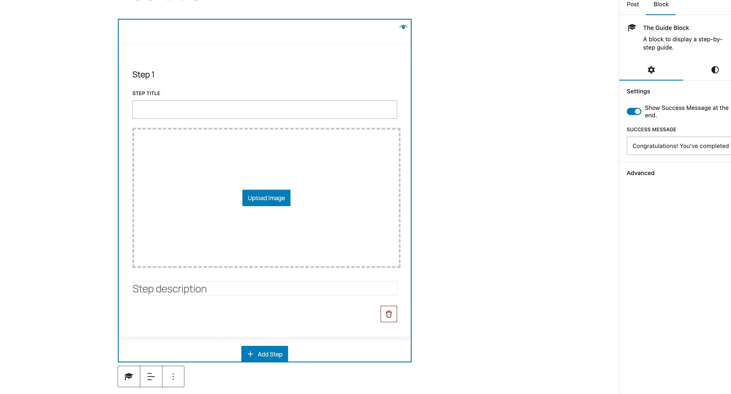 A WordPress block that lets you create step-by-step guides, tutorials, or workflows directly in the editor. Perfect for how-tos, onboarding, and process documentation—structured, intuitive, and easy to follow.