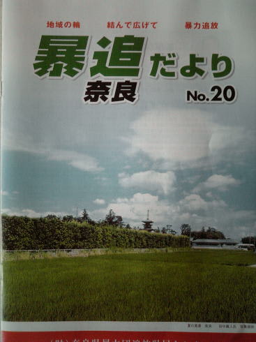 2008-09-23 タイトルは夏の風景 民俗の掲載・著作 真っ青な青空に白い雲が浮かぶ夏の奈良風景を映し出す景観はどこがいいのだろうか。 広がる田園とともにお寺の表情が描かれるといえば、薬師寺を遠景にとらえてみた。 夏をイメージする奈良の風景でないと誌面に張りがでないんだとダメだしをうける。 知人からの要請はとても難しい。 <暴対だより奈良No.20掲載> (H20. 8.19 SB912SH撮影)