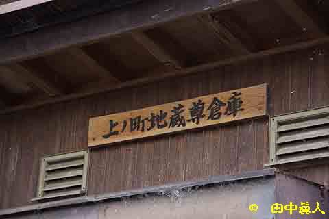 手前の地蔵さんに参拝してすぐ横に建つ地蔵堂に向かって手を合わすこの地の地蔵さんは上ノ町の地蔵尊である。