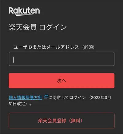 ※まだ楽天市場会員ではない場合には「楽天会員登録(無料)」から楽天会員の登録手続きを行ってください。