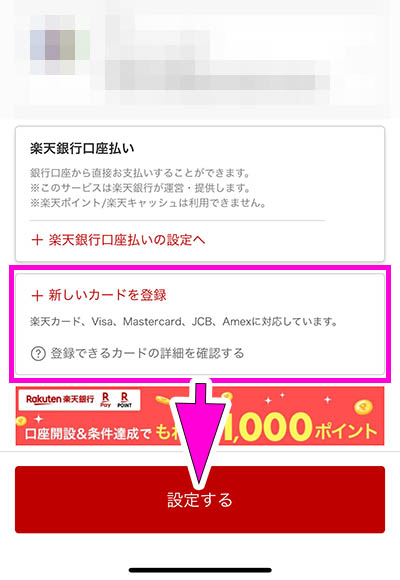 楽天カードをお持ちでない場合は、他のカードも登録できますが、やはり楽天ペイで使うなら楽天カードが何かと便利なので、作っておくと良いかもしれません。