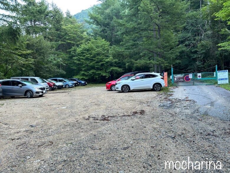 広河原登山口の手前には無料駐車場があり、路肩を含め約50台ほどが止められます。