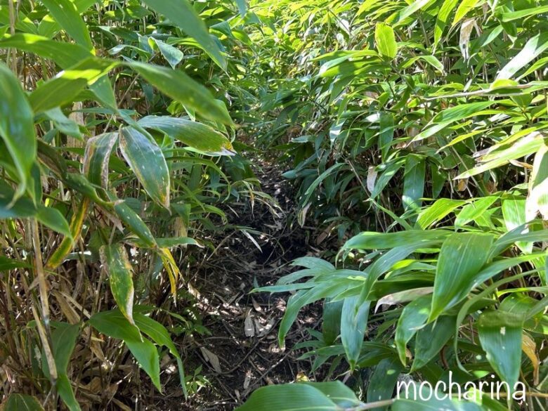 っと思ってしばらく登っていくと、山道を覆い尽くすほどすごい笹藪が…😱
