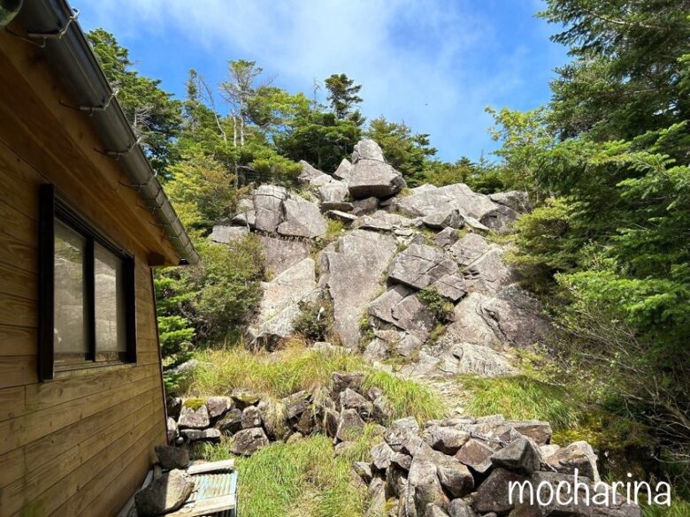 - 黒井沢ルート →野熊ノ池、避難小屋と水場(山頂避難小屋から約250m下ったところにある岩清水)→通行止め(2024年8月時点)