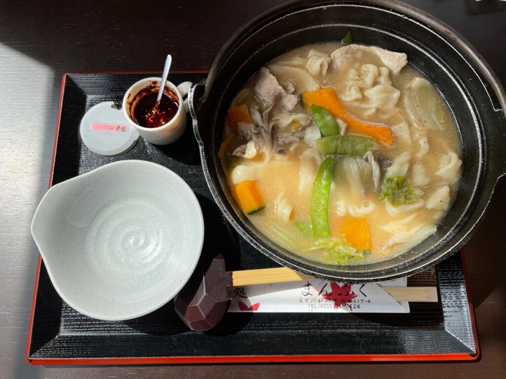 昼前に下山したので、お昼ご飯を食べに行きました。山梨といえば、ほうとうですよね!