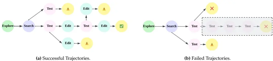- 代码轨迹:结合成功/失败路径分支策略,有效复用错误轨迹,提升模型容错与修复能力;