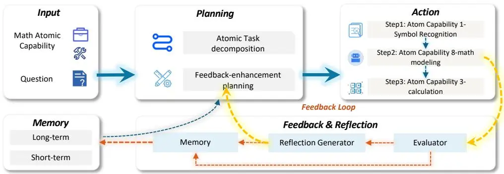 - Agentic-CoT:将传统 CoT 拆解为 分析 → 规划 → 执行 → 反思 → 总结 五阶段,形成“有纪律的思考”;