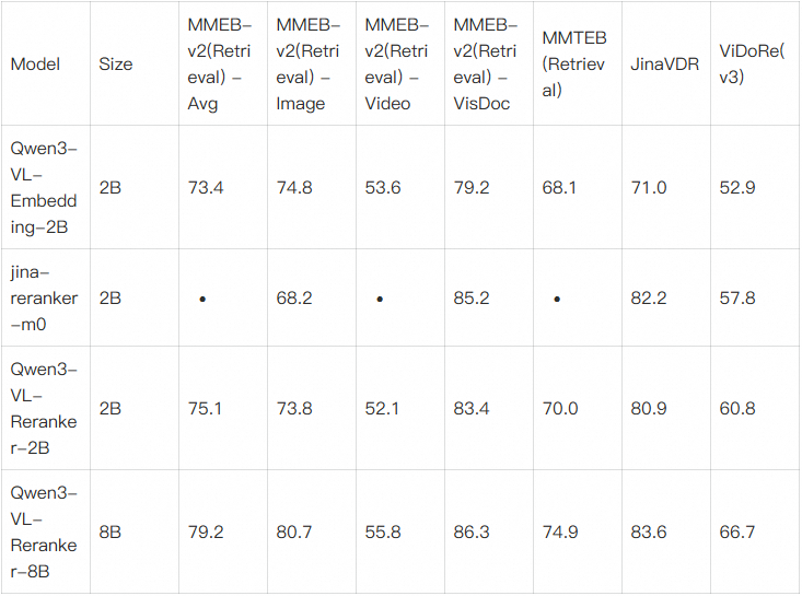 表2:Qwen3-VL-Reranker 评测结果对比