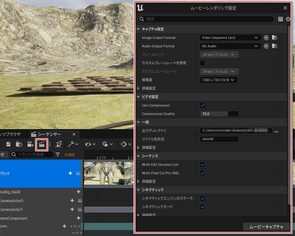 シネマティック ムービーの出力|Unreal Engineドキュメント