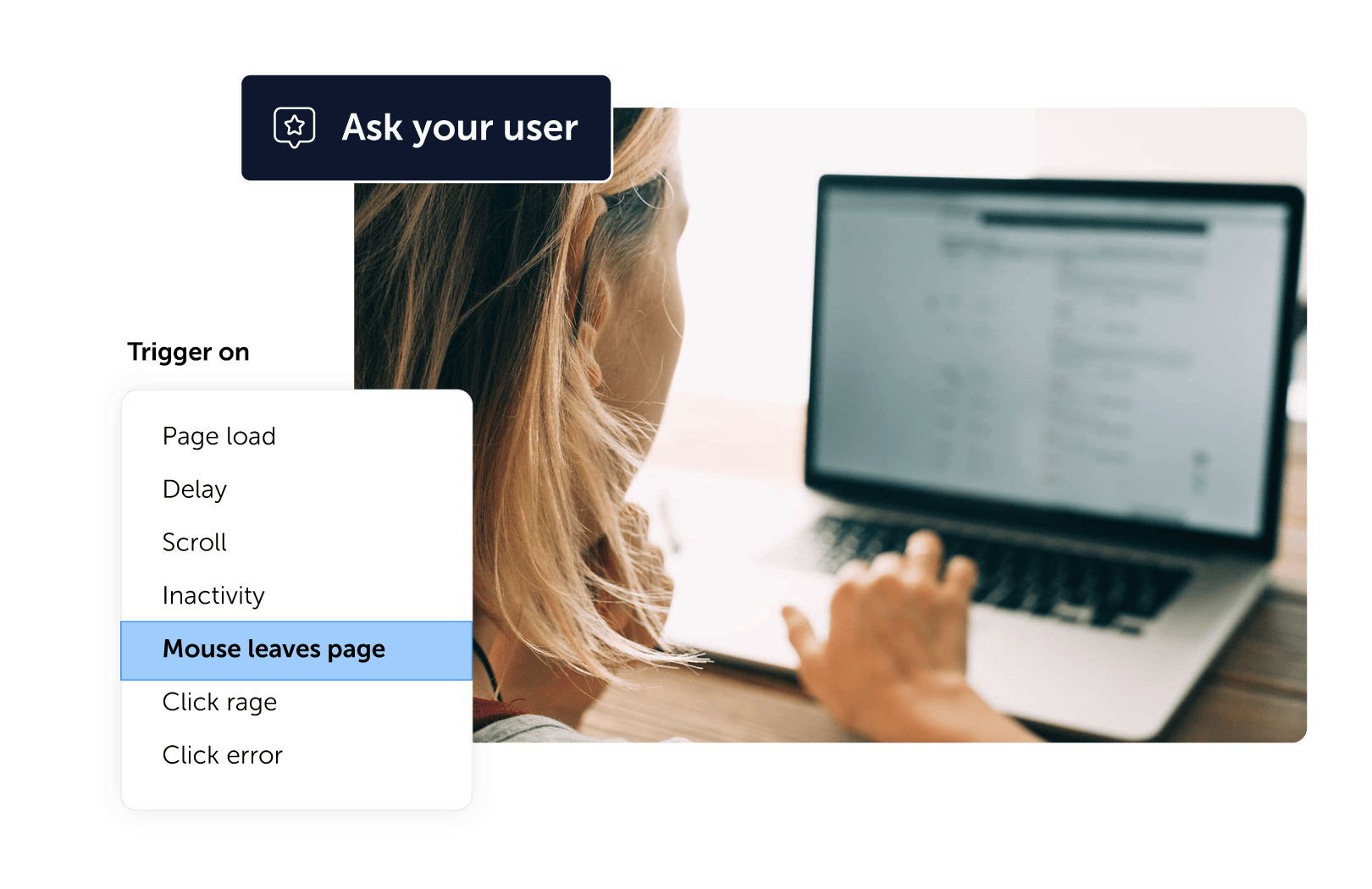 Choose between a range of different types of questions and trigger them at the right time and place on your site.