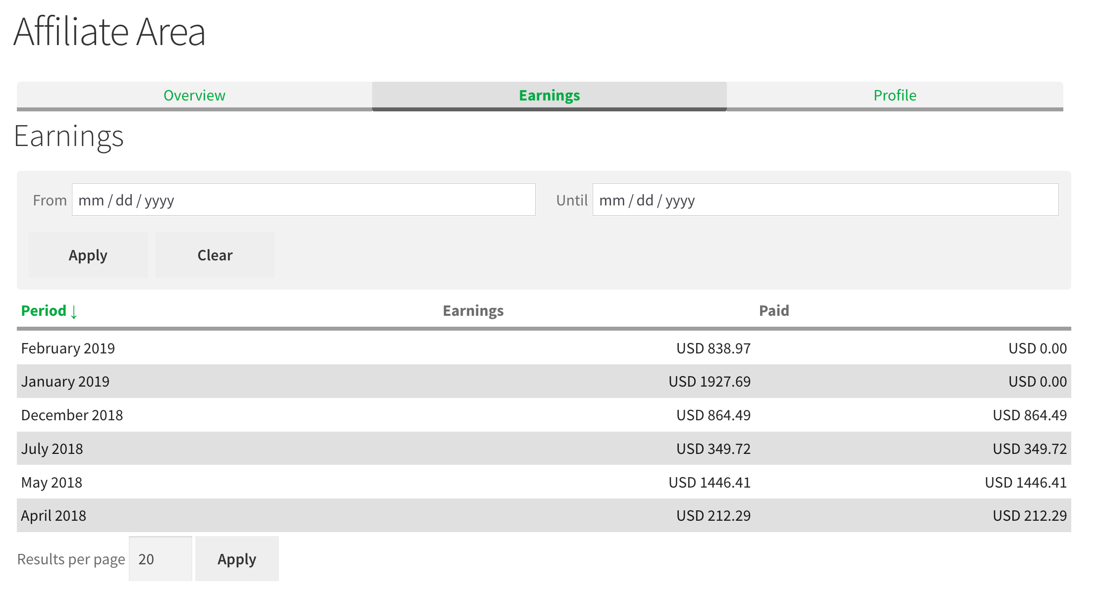 Affiliates Dashboard