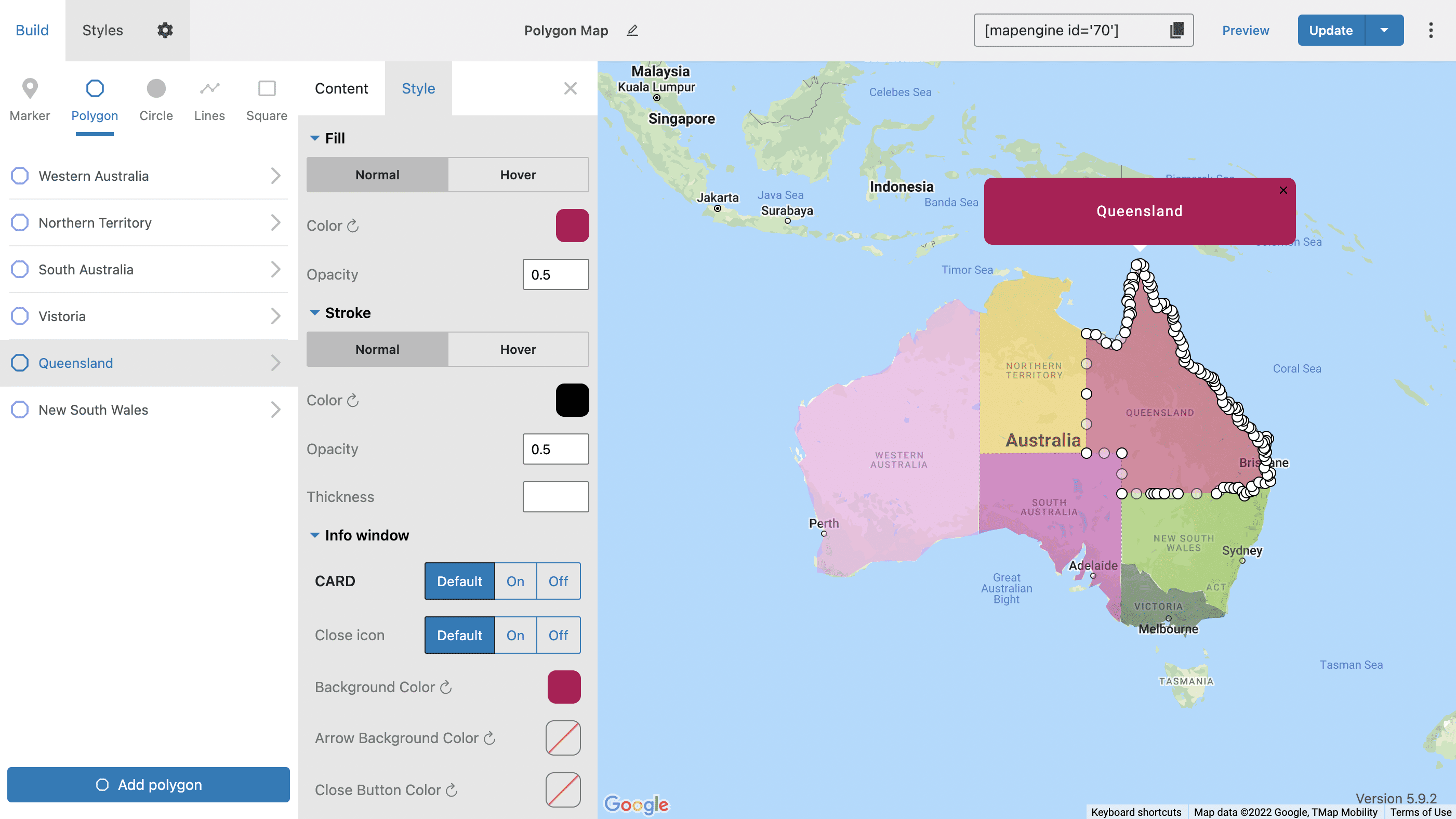 Map Engine can be your one-stop destination to create fully customized Google Maps or Open Street Maps.There are no restrictions on the map platform selected; switch seamlessly between Google Map and Open Street Map. Using this plugin, you can add an unlimited number of markers and shapes to your map. An extremely user-friendly interface to ease up your map building experience without any hassle!