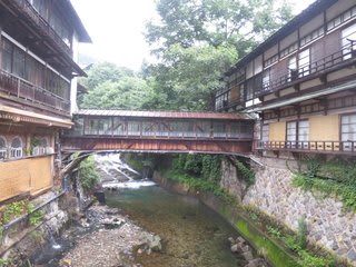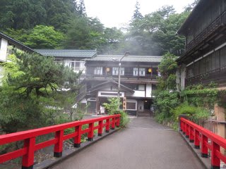 この赤い欄干の橋を渡って旅館に行く部分が、