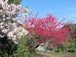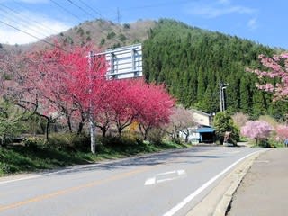 (写真は、三国街道沿いの満開の桜と桃の花)