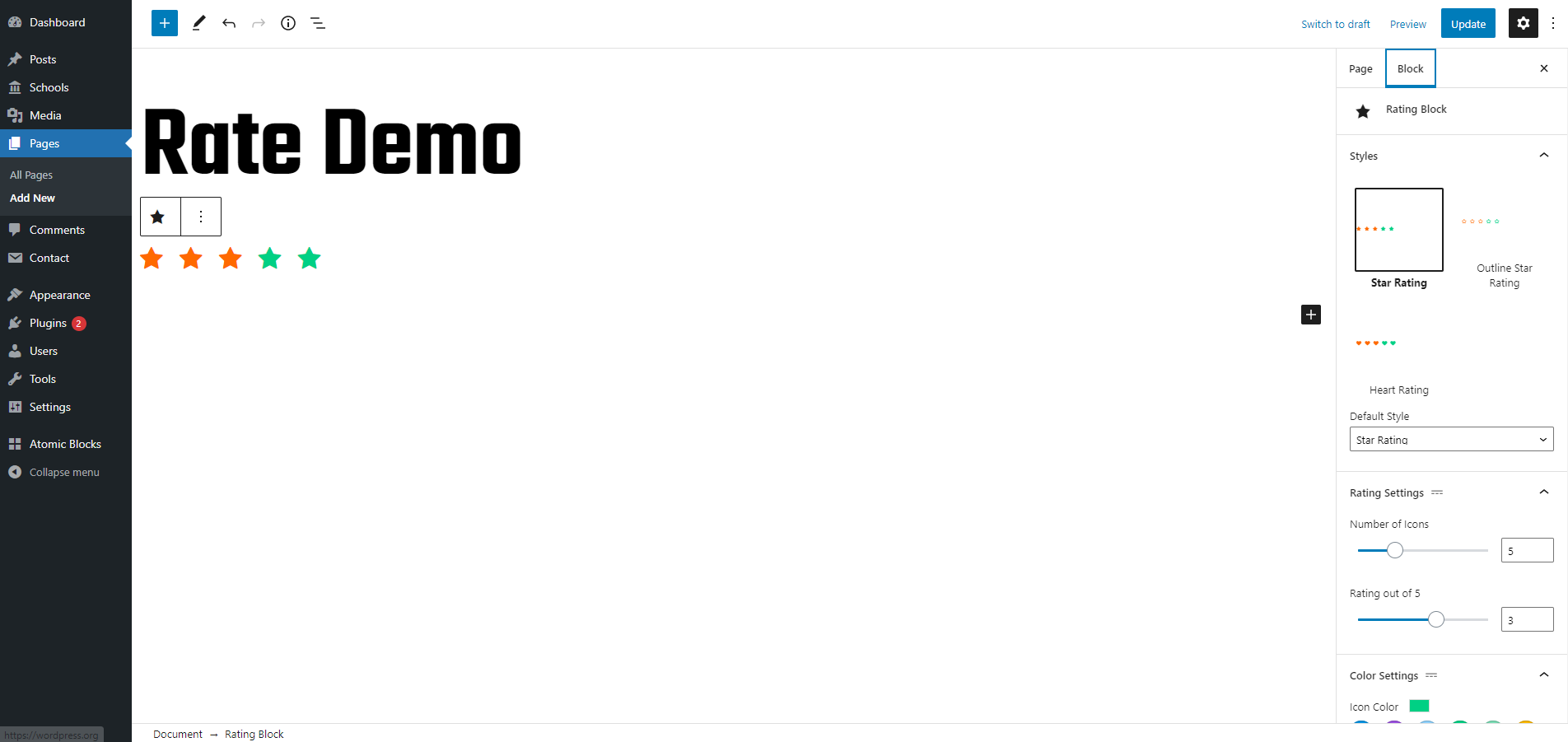 Display ratings in different layouts using wordpress block.
