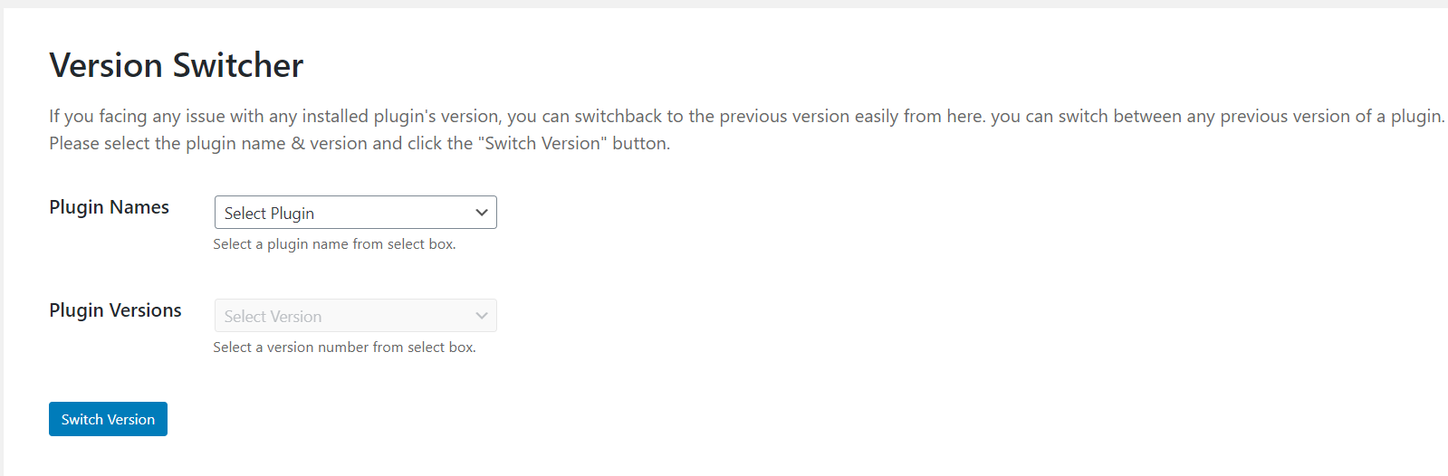 - It will help you to switch between any previous version of a plugin.