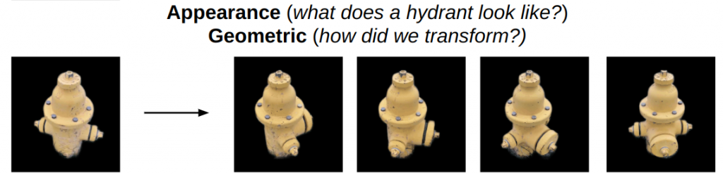 We intuitively understand that this would move the small outlet towards the front and right. We can also imagine rotating the hydrant further and know that the (currently occluded) central outlet will eventually become visible on the right. These examples serve to highlight that this task of novel-view synthesis requires an understanding about both the geometric transformations e.g. motion of the visible surfaces, as well as the appearance e.g. occlusions and symmetries to allow for realistic extrapolations. While prior works only partially capture the above aspects, we develop an approach that incorporates reasoning along both these aspects to render accurate novel views of a previously unseen object.