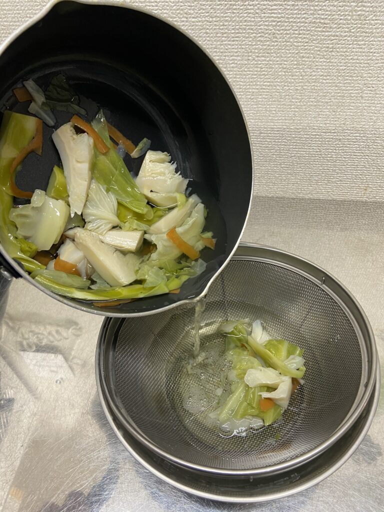 30分経ったらザルなどで濾してベジストの完成。