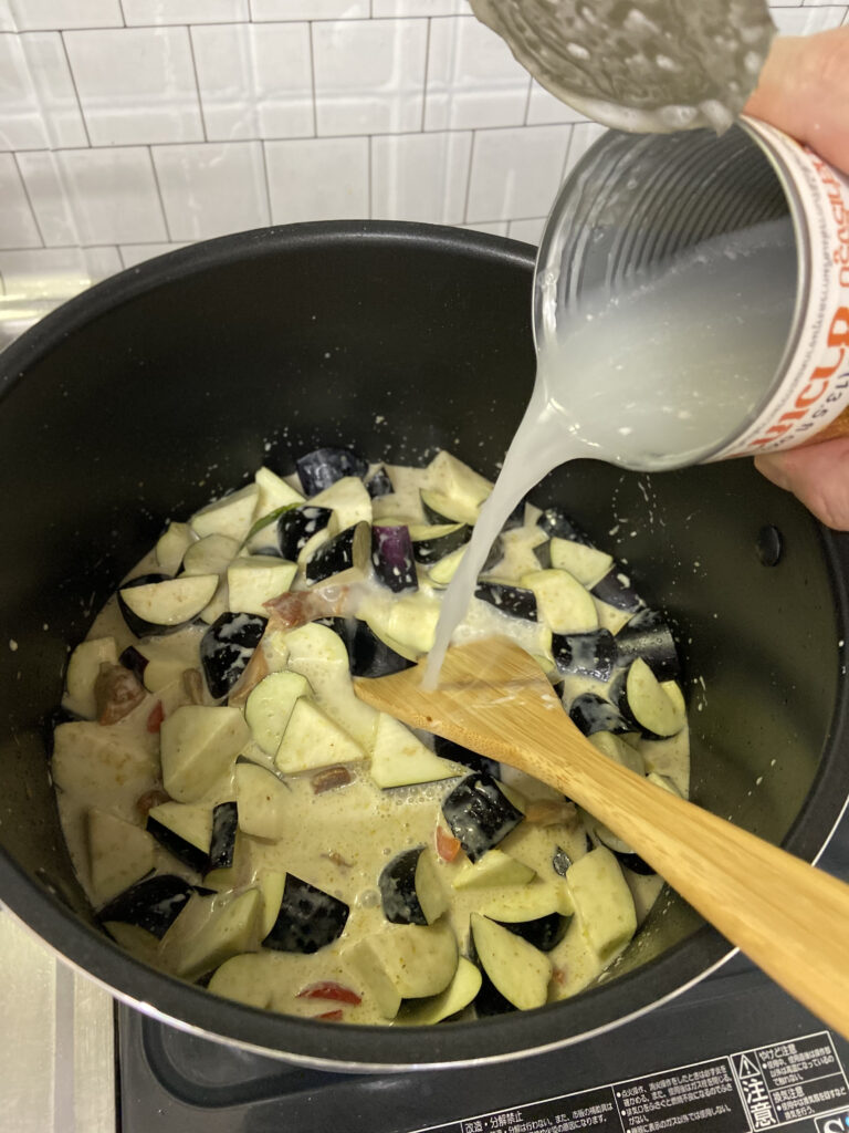 ココナッツミルクは冷えると固まるので缶を開ける前によく振ること。