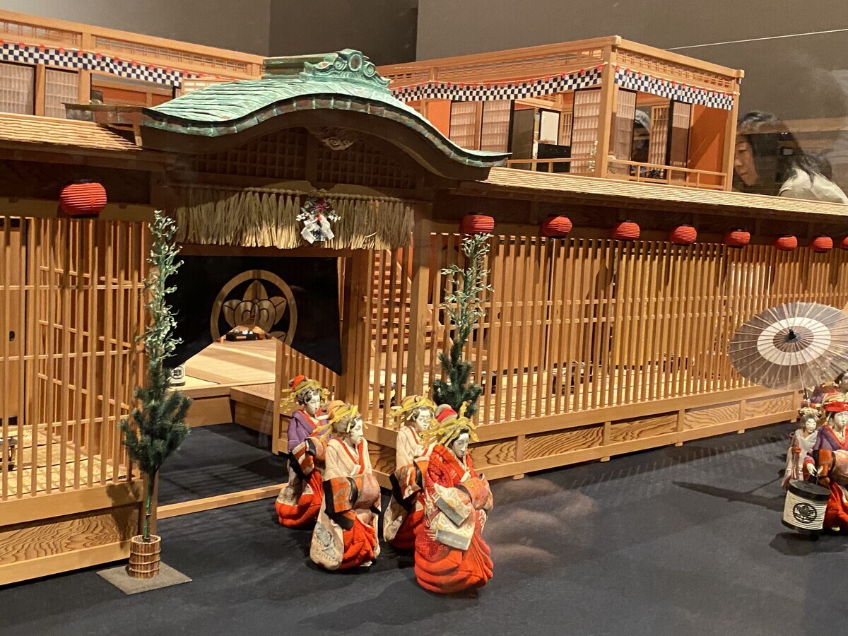 人形師・辻村寿三郎、檜細工師・三浦宏、江戸小物細工師・服部一郎による《江戸風俗人形》(昭和58年)は、発表当時《吉原》と題されていたように、文化・文政(1804 - 1830 年)頃の大見世をテーマに作られている。