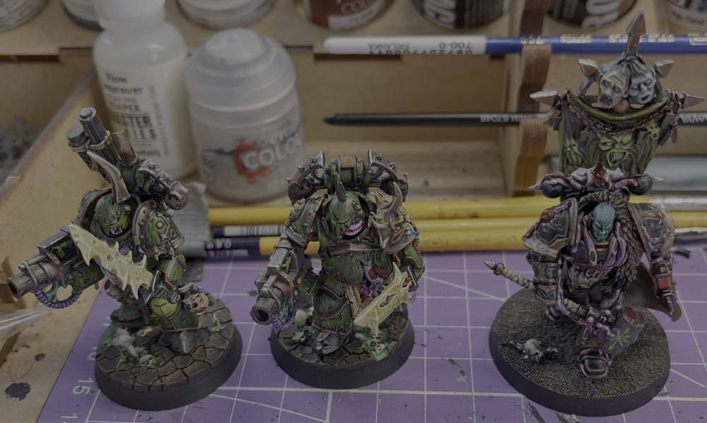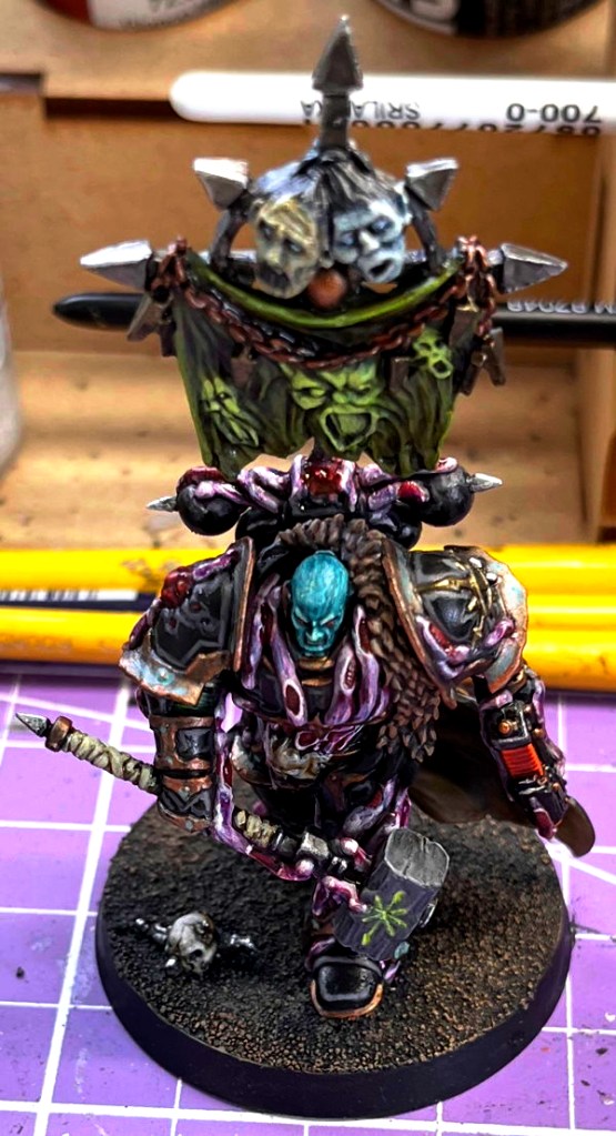 Even before I was invited to play Kill Team, I was working on my 1000 point 10th Edition Chaos Space Marine Army and the last model I needed, or thought I needed to field a thematic 1000 point force. I also decided to paint two of the Death Guard Hero models with just bolters. I didn’t think I could convert them to have a Blight Launcher, I already have plenty of models with just bolters. They’ll end up in Jaundice Squad as I want to use squads I didn’t use in our last campaign. New models are lot more work to assemble than the old metal models, though you did have to pin some old metal models.