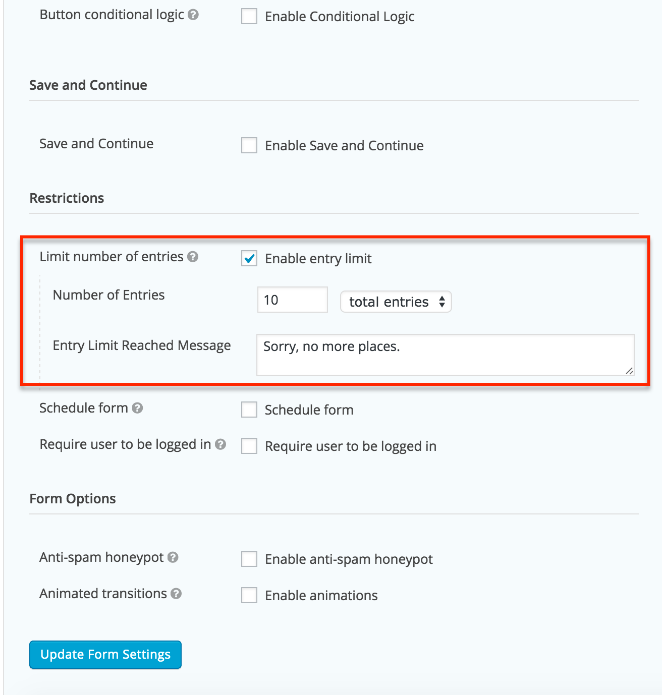 - Will compare that total with the “ Number of Entries” (total entries) option from Form Settings tab.