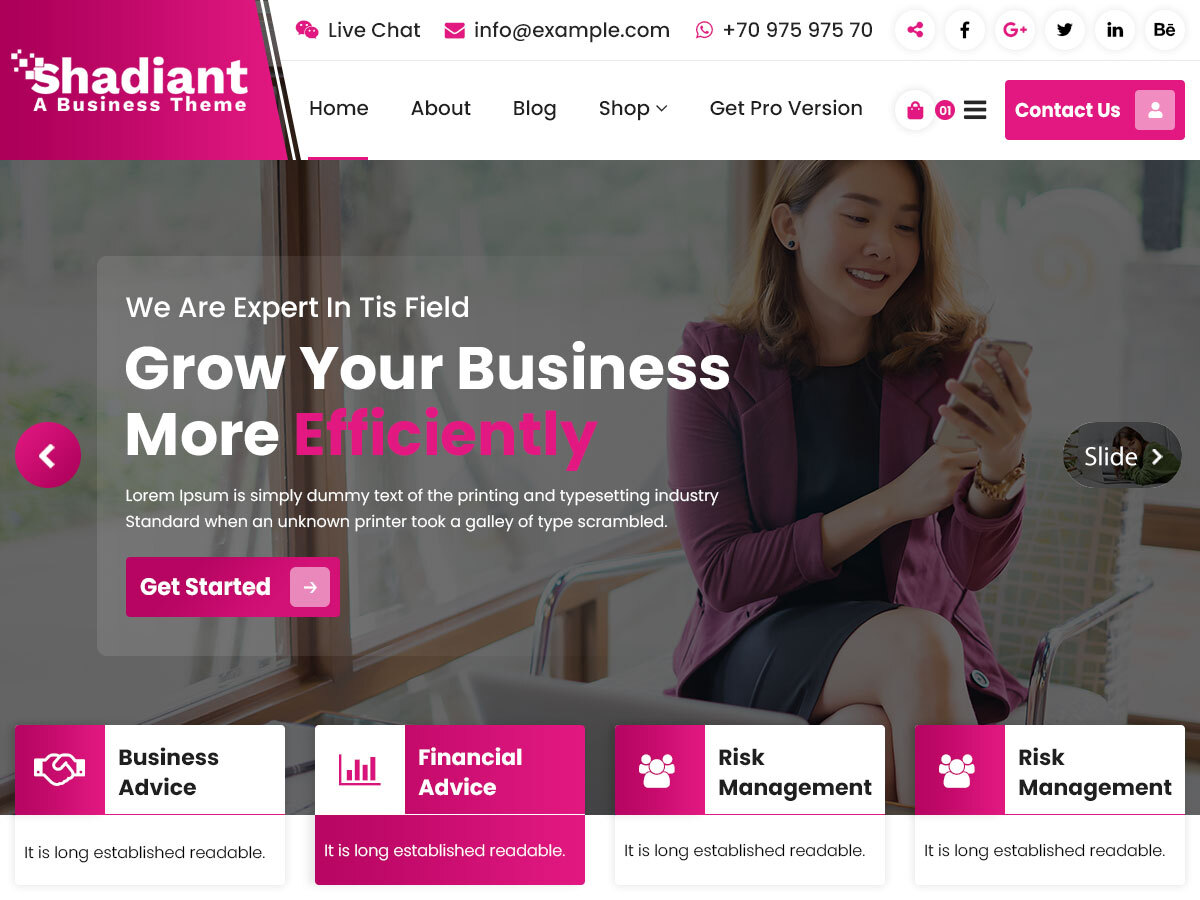A powerful next generation theme for upcoming generations and traditional UI that focuses on the color combinations of solid and gradient colors, along with cool animations and attractive features. It’s perfect for any type of business. View the demo of Shadiant Pro https://www.nayrathemes.com/demo/pro/?theme=shadiant