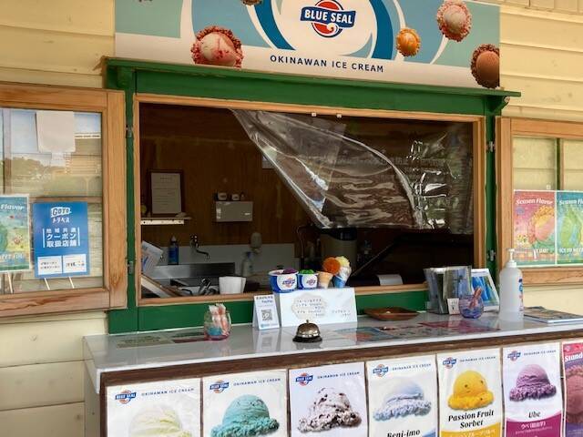 シャワー場の側には、ブルーシールのアイスクリーム屋さん。わかってらっしゃる!