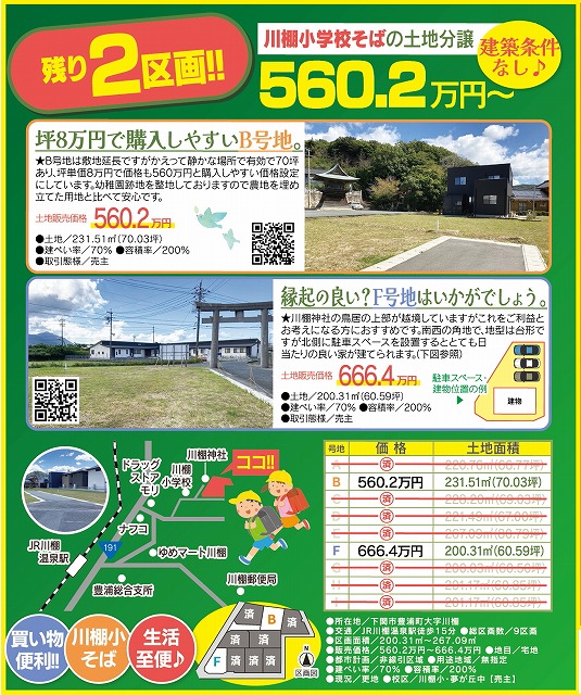 買い物便やJR川棚温泉駅へのアクセスも他の分譲地より至便です。