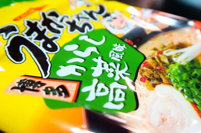 ・からし高菜の風味と辛味がきいたぴりっと辛いとんこつスープ。