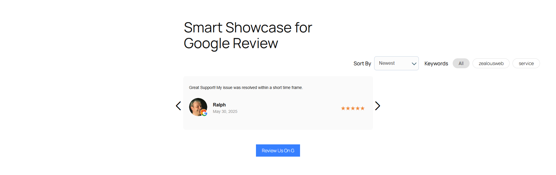 Features of Smart Showcase for Google Reviews
