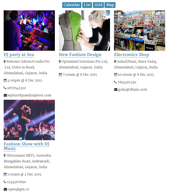 In grid view you can see the events in grid style with usefull details.