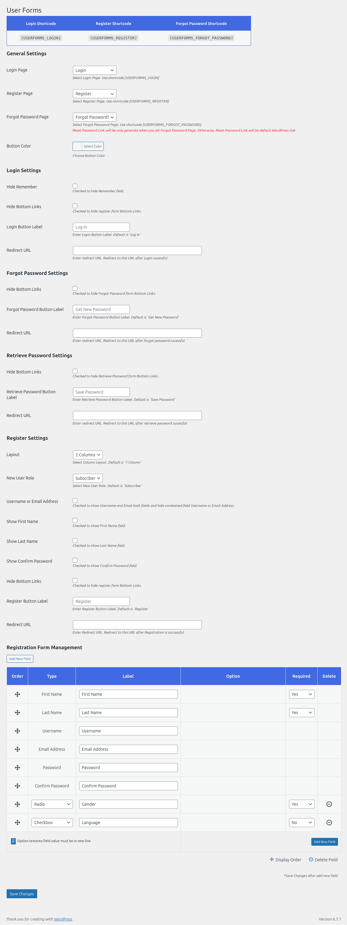 Designing WordPress custom registration forms with simply drag and drop fields and visually create user register forms. Login form, Forgot Password Form with global setting menagement.