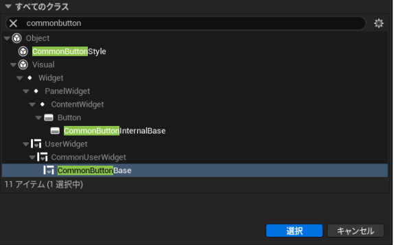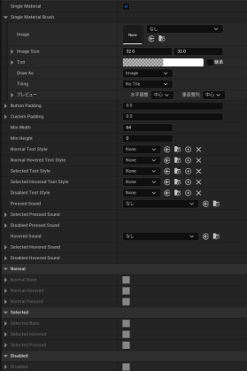 これらの状態に応じた、CommonButtonBase のボタンに関するビジュアルの設定は、CommonButtonStyle という専用クラスを継承した BP で設定を行う。