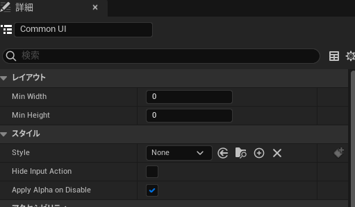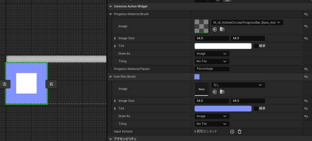 前回、 CommonActionWidget のプロパティには InputAction の設定をしたが、今回はスルーしておく(あとで CommonButtonBase 側で設定する)。