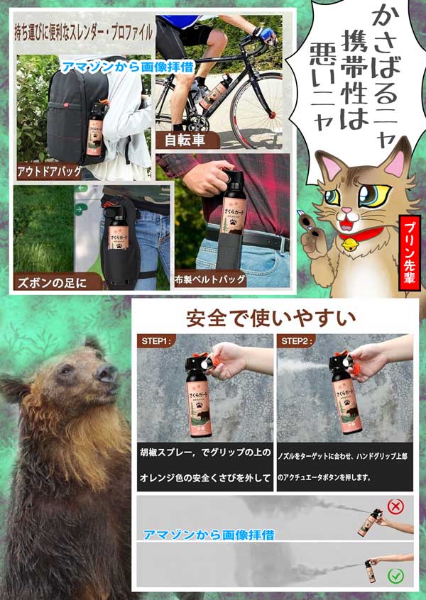 唐辛子🌶の刺激臭で熊🐻に退散してもらうスプレーが『熊よけスプレー』です!