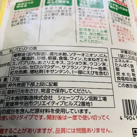 フライパンでお米を洗わず、1.5カップを油で炒めて、パエリアの素と水300mlを入れて煮立たせる。