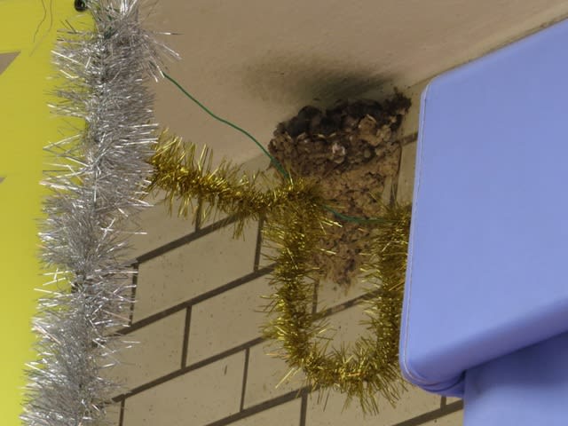 一昨日見つけた岡本にある美容院の玄関口の上の巣。