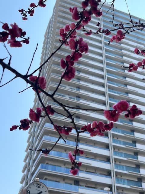 住吉川沿いの梅が満開です。