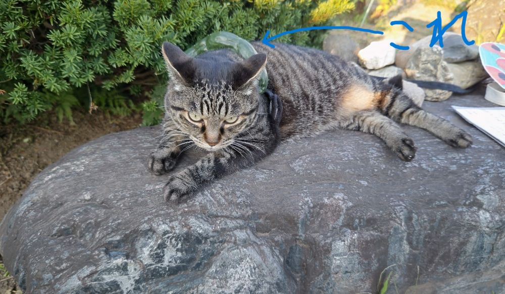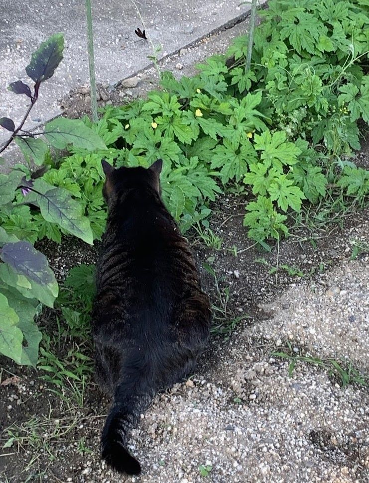 日陰の土の上はヒンヤリしますよ